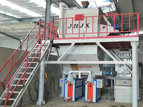 该生产线针对石膏砂浆粉体比重较大、具有一定粘结性等特点,在传统干粉混合生产线基础上进行改良创新。在保证设备稳定性、称重精度、日产量基础上,对设备进行优化,使其更符合石膏基产品的生产。